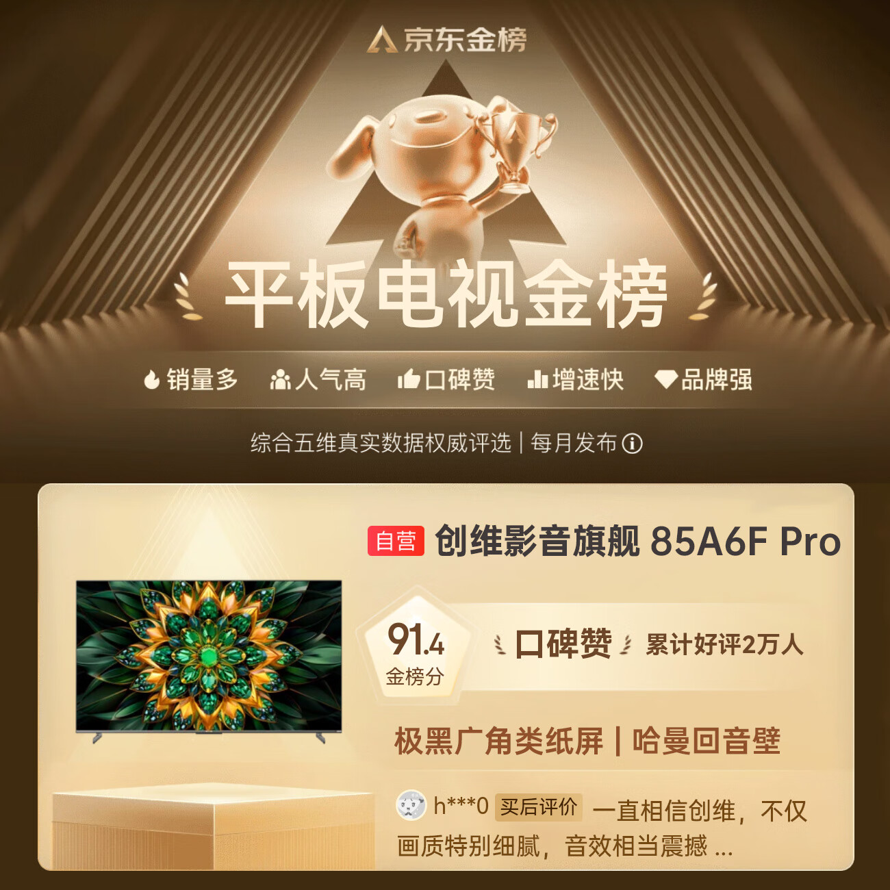 今日推荐:创维电视85A6F Pro 85英寸智能平板电视机2880分区QD-Mini LED 回音壁液晶游戏 85吋国家补贴20% A6E+