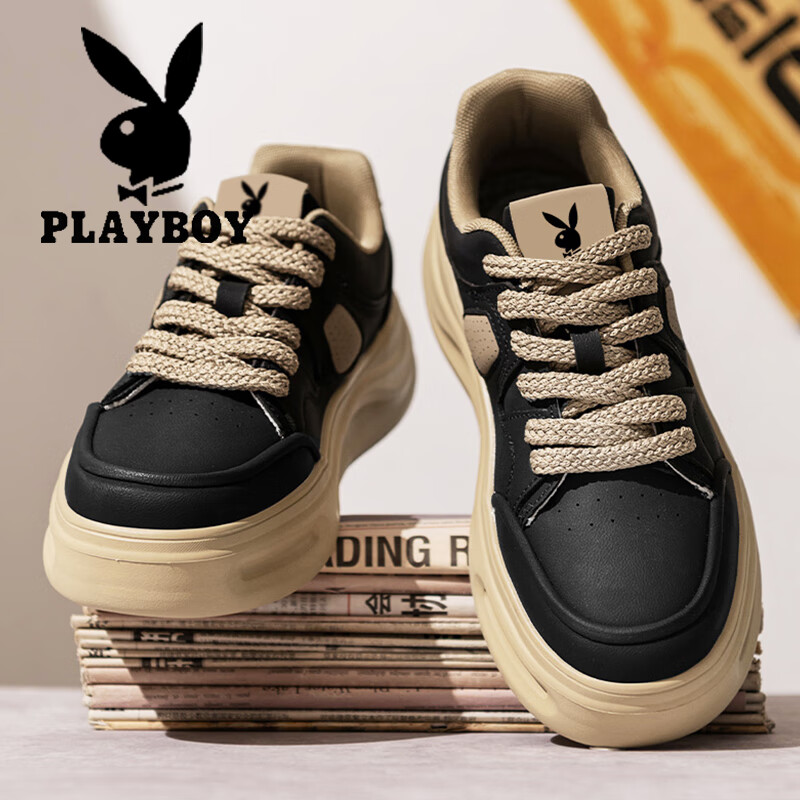 花花公子鞋子男鞋春秋季2025新款男士透气板鞋厚底休闲鞋子男款小白鞋男 米杏 43