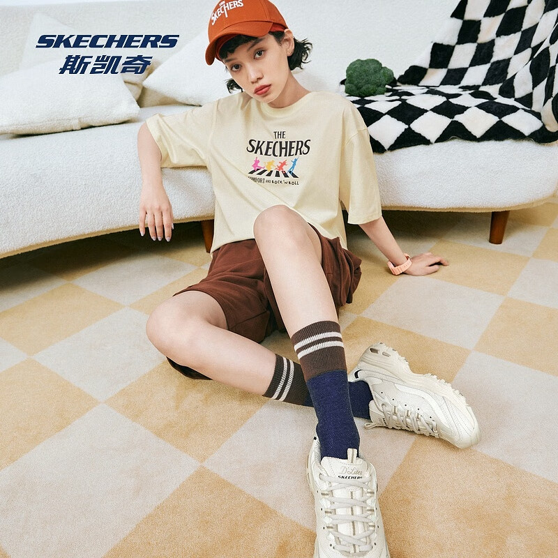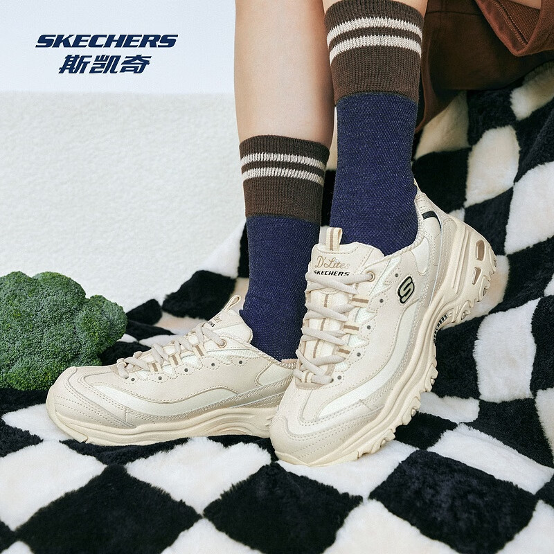 斯凯奇小白熊|女鞋秋季透气小白鞋增高复古老爹鞋运动鞋