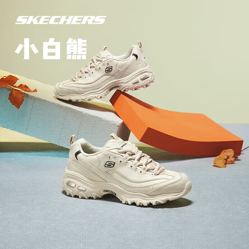 斯凯奇(Skechers) 斯凯奇小白熊|女鞋秋季透气小白鞋增高复古老爹鞋运动鞋
