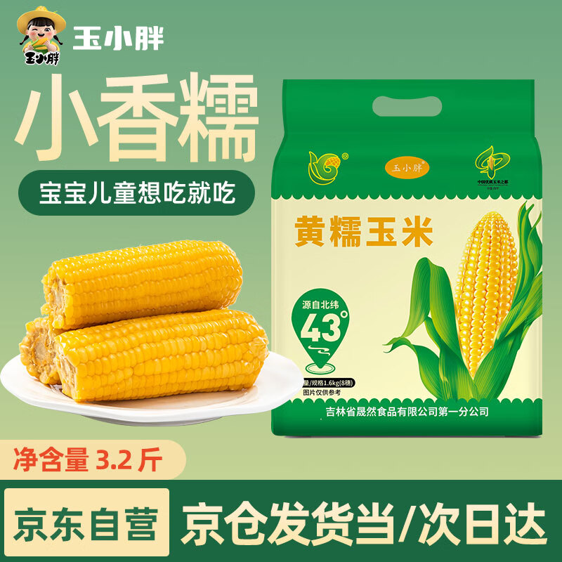 玉小胖东北小黄糯玉米棒8根3.2斤 京东自营旗舰店新鲜黏玉米 真空包装袋
