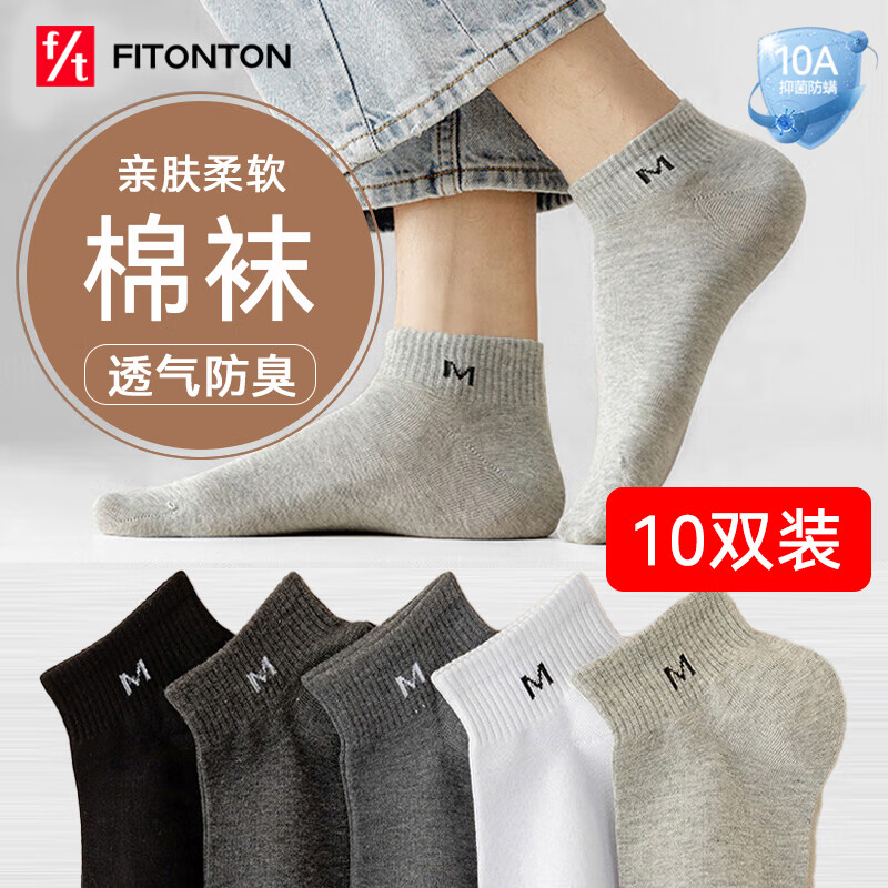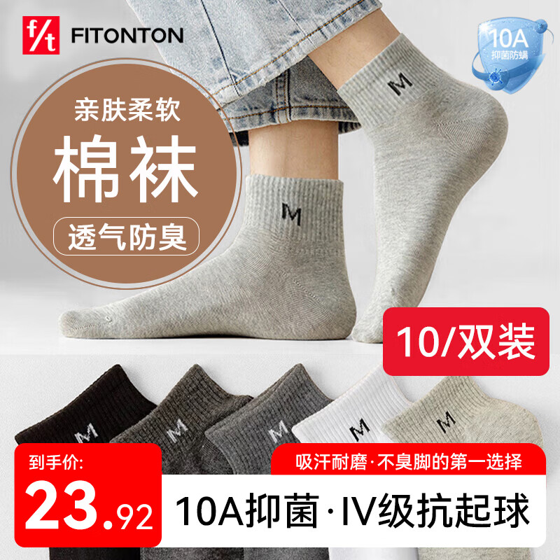 FitonTon10双男士袜子秋冬季袜子男短袜10A抗菌防臭运动短筒吸汗棉中筒袜