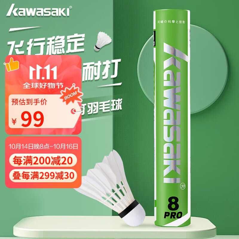 川崎(KAWASAKI)羽毛球 训练级8号pro耐打专业比赛训练鹅毛球12个装