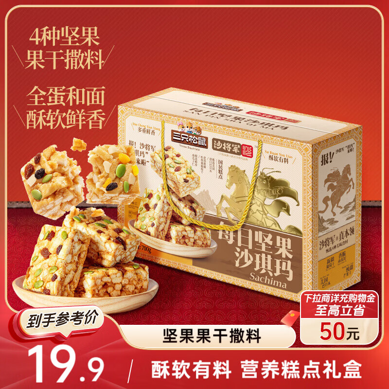 三只松鼠每日坚果沙琪玛700g 早餐中式糕点点心健康中秋团购送礼礼盒