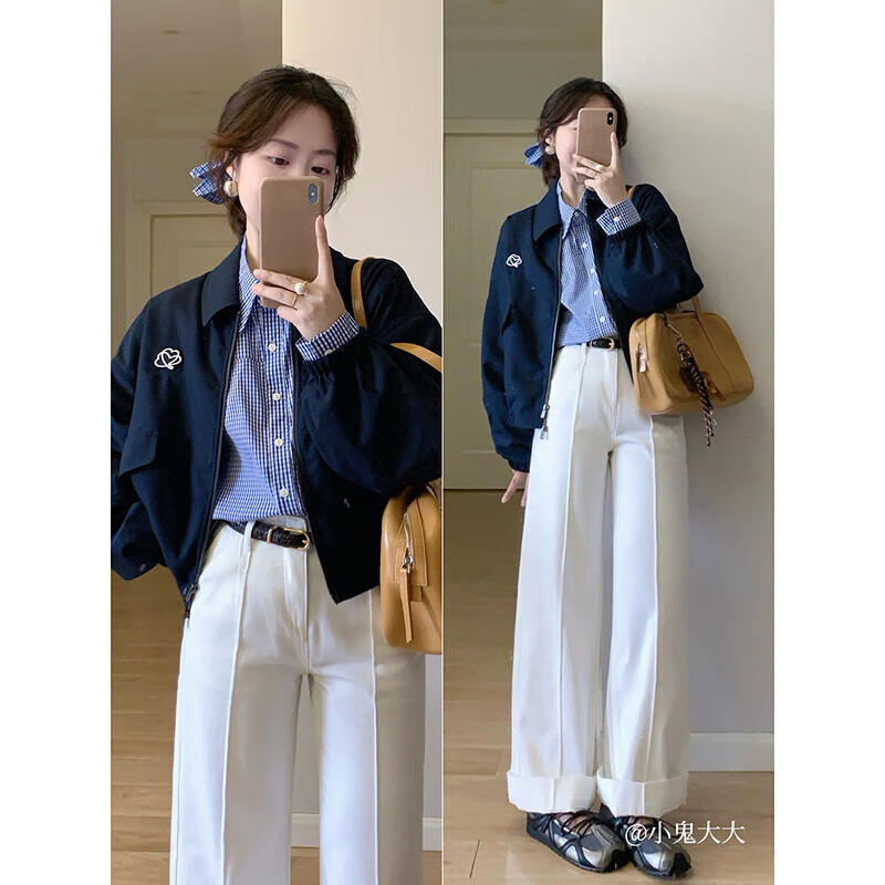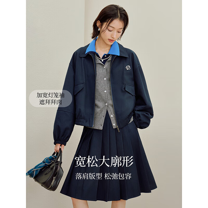 茵曼(INMAN)2025秋冬女装新款复古休闲翻领拉链夹克外套百搭宽松短款上衣 t深蓝色 M
