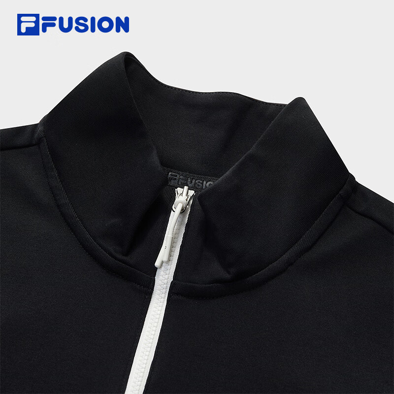 FILA FUSION斐乐潮牌女子针织长袖衫2025秋新款时尚修身半拉链长T 正黑色-BK M 165/84A/M