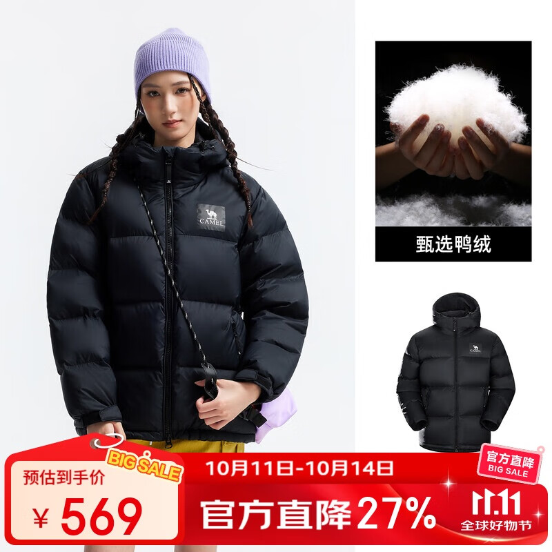 骆驼(CAMEL)【拒水羽绒】户外羽绒服冬新款中长款男女加厚外套羽绒服