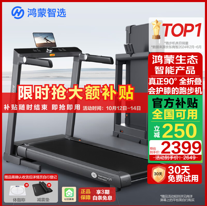 华为智选鸿蒙智选跑步机家用降噪90°全折叠智能减震走步机亿健精灵S8