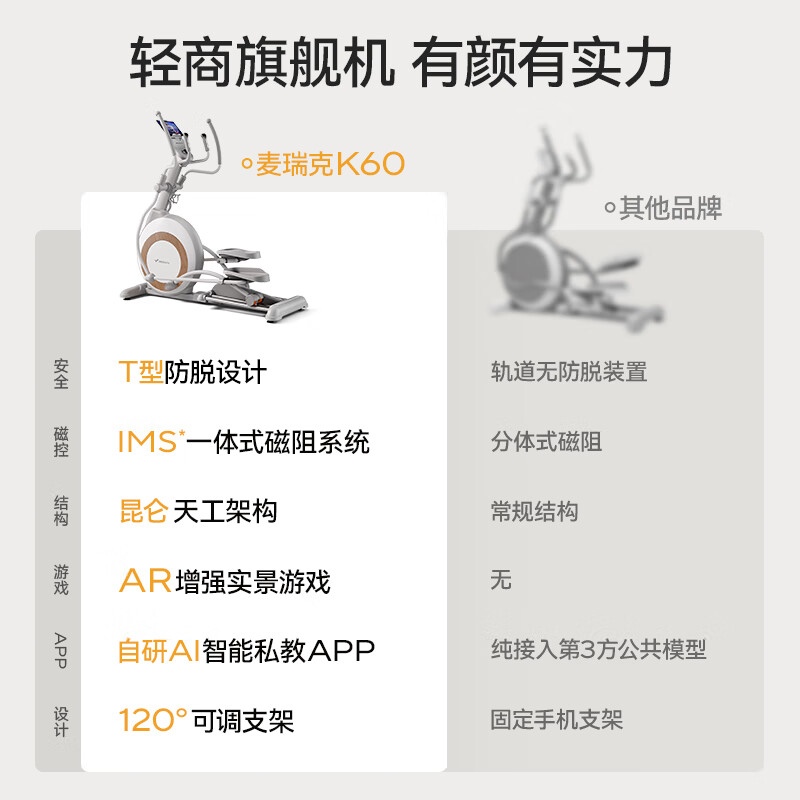 麦瑞克(MERACH)椭圆机家用智能椭圆仪太空漫步仪健身房运动器材K60 MR-E23W1白