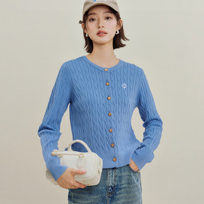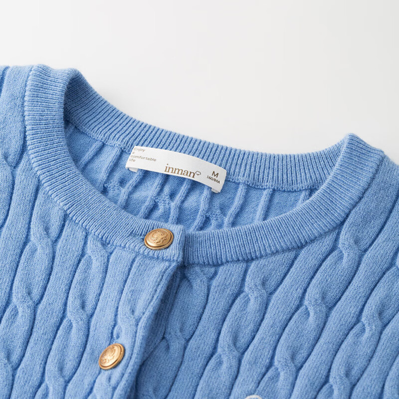 茵曼(INMAN)章若楠同款复古老钱风女装开衫毛衣2025秋季新品通勤感针织衫 碧海蓝 M