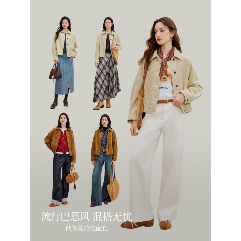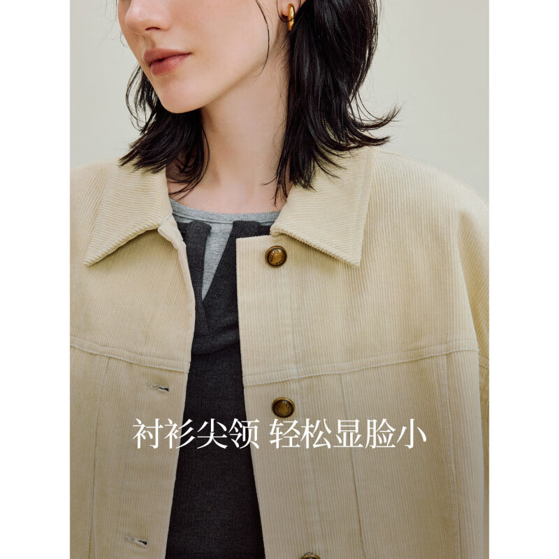 茵曼(INMAN)2025秋冬女装新款复古灯芯绒巴恩风花苞外套休闲百搭宽松上衣 棕色 S
