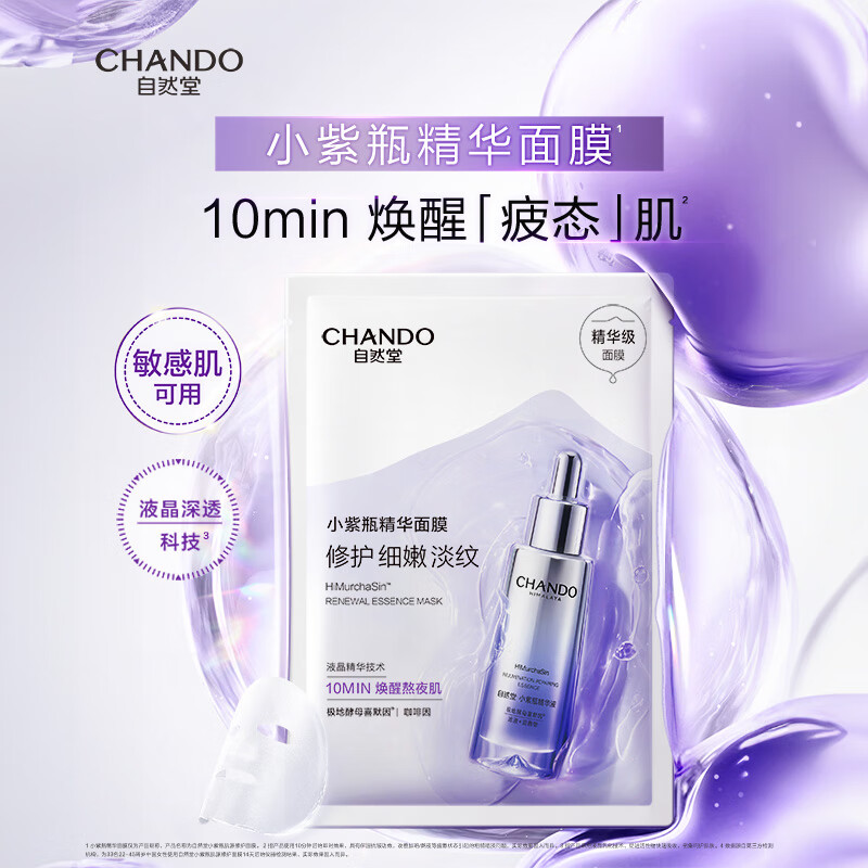 自然堂小紫瓶肌源修护面膜 27mL×5片修护细嫩淡化细纹抗疲老敏肌适用