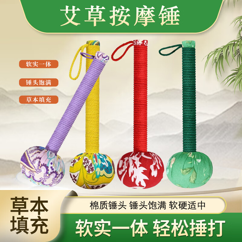 JEPOO艾草按摩锤捶背拍打锤敲背神器送妈妈送长辈绿色款艾草锤33cm 1个