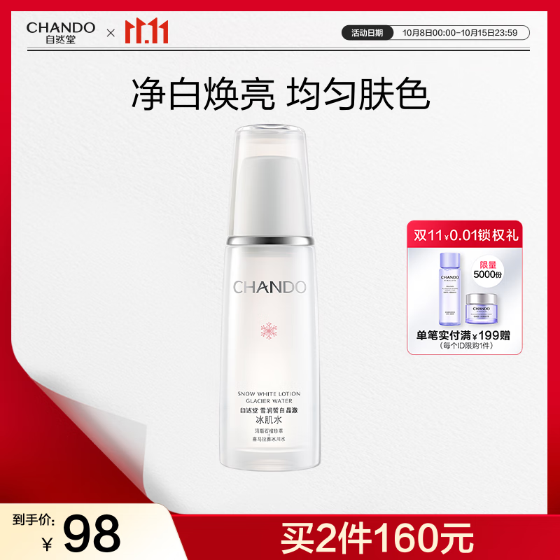 自然堂雪润皙白晶澈冰肌水160ml 焕白淡黑保湿舒缓提亮护肤女