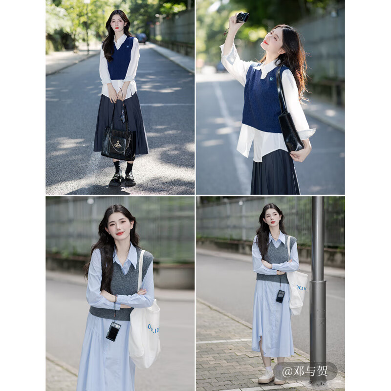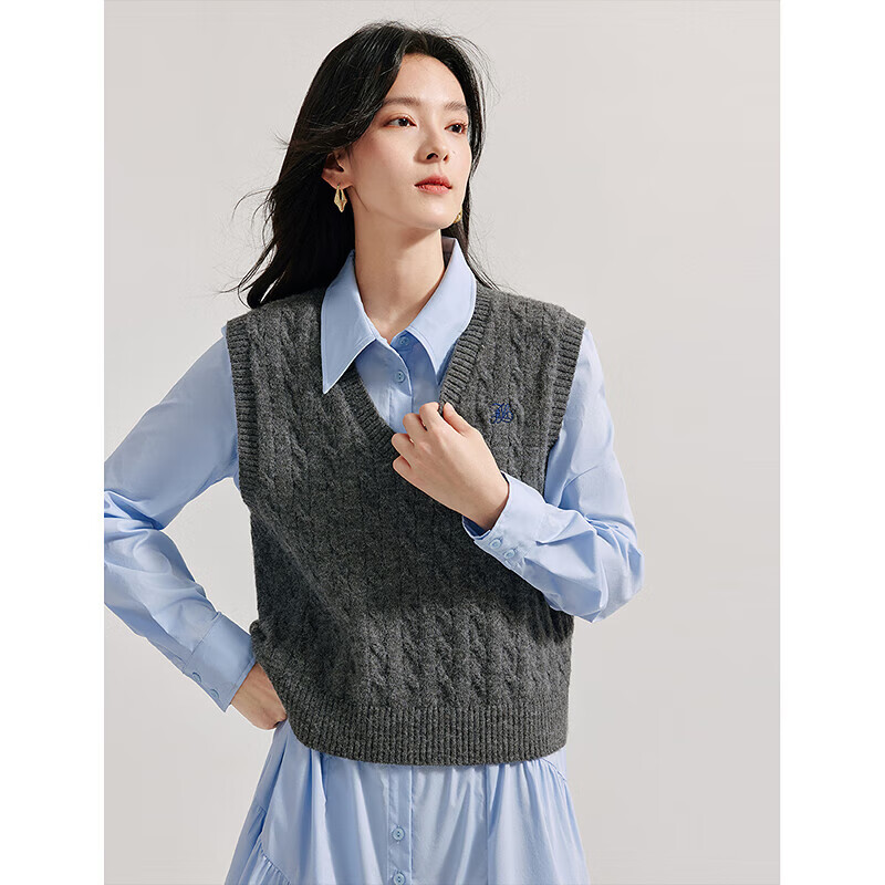 茵曼(INMAN) 针织马甲女老钱风V领薄秋冬学院风内搭毛衣上衣 苍灰色 L
