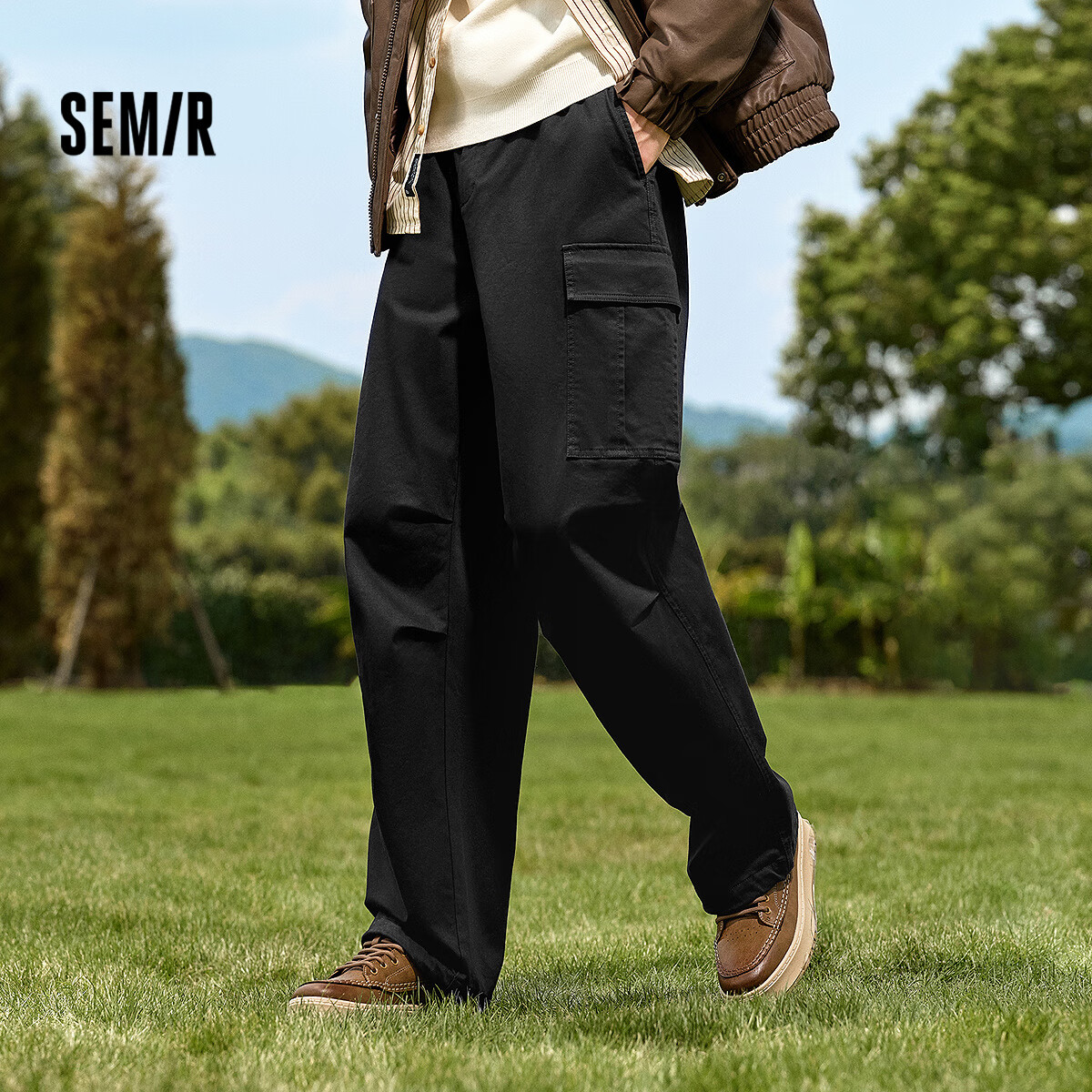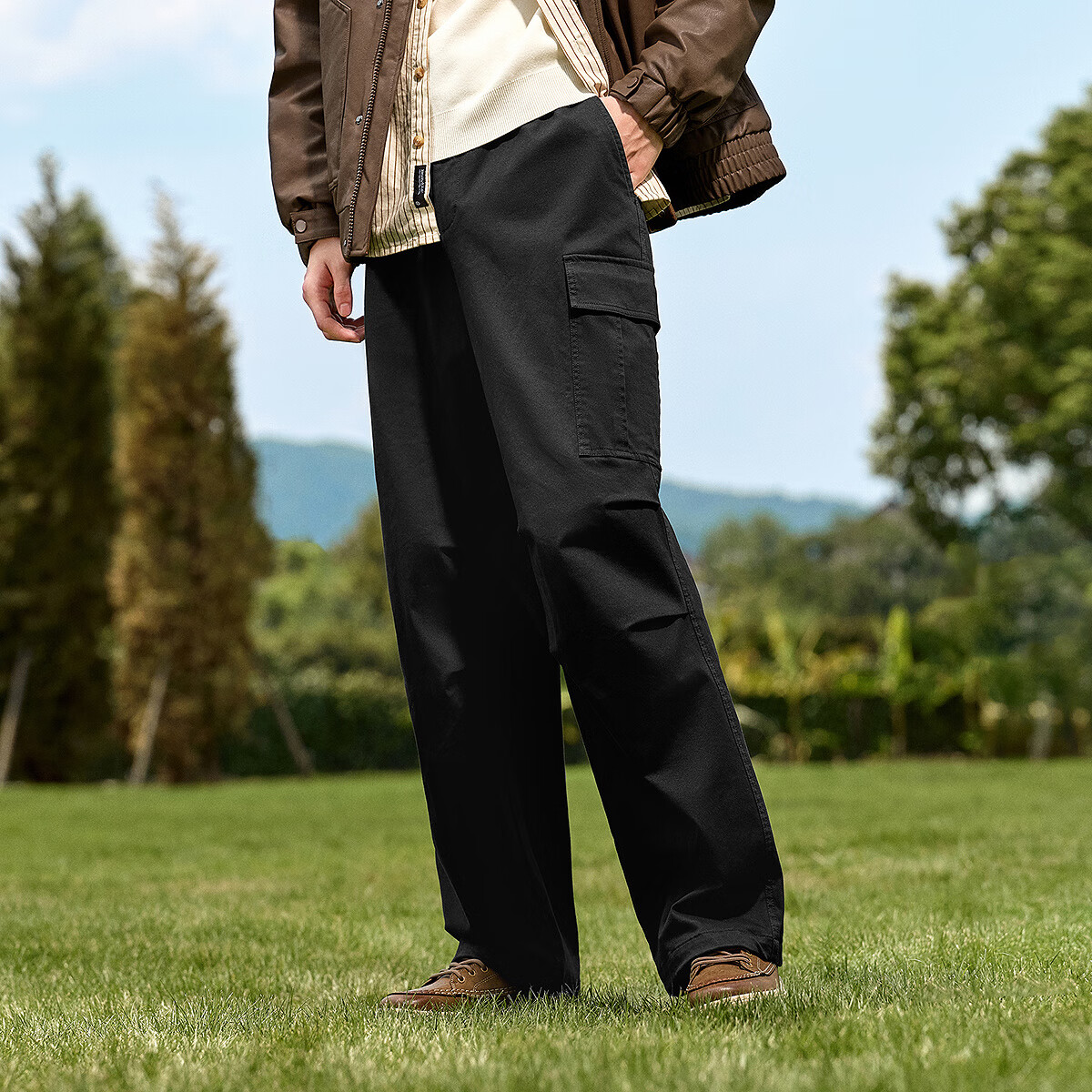 森马(Semir)休闲裤男冬季情侣宽松直筒工装裤磨毛抓绒多口袋时尚101724127202
