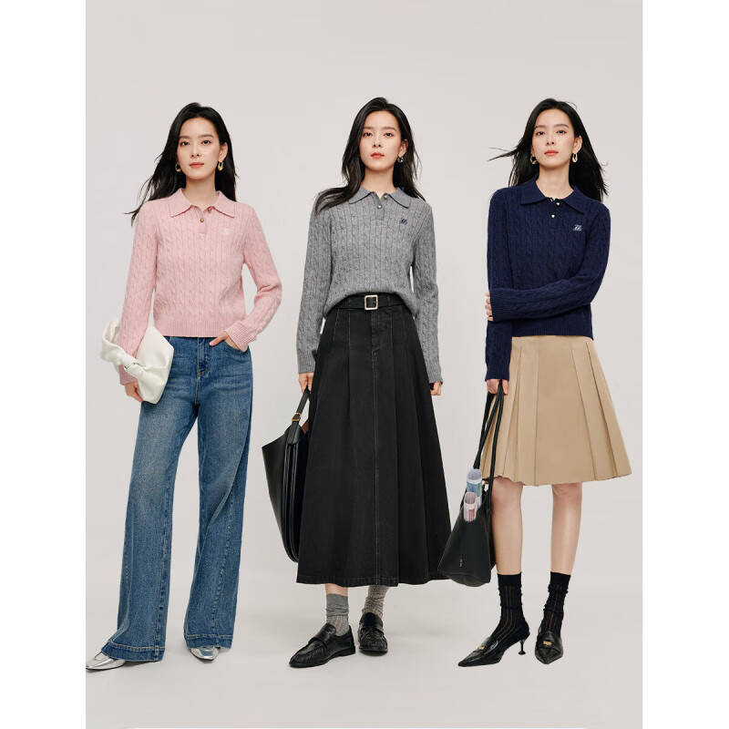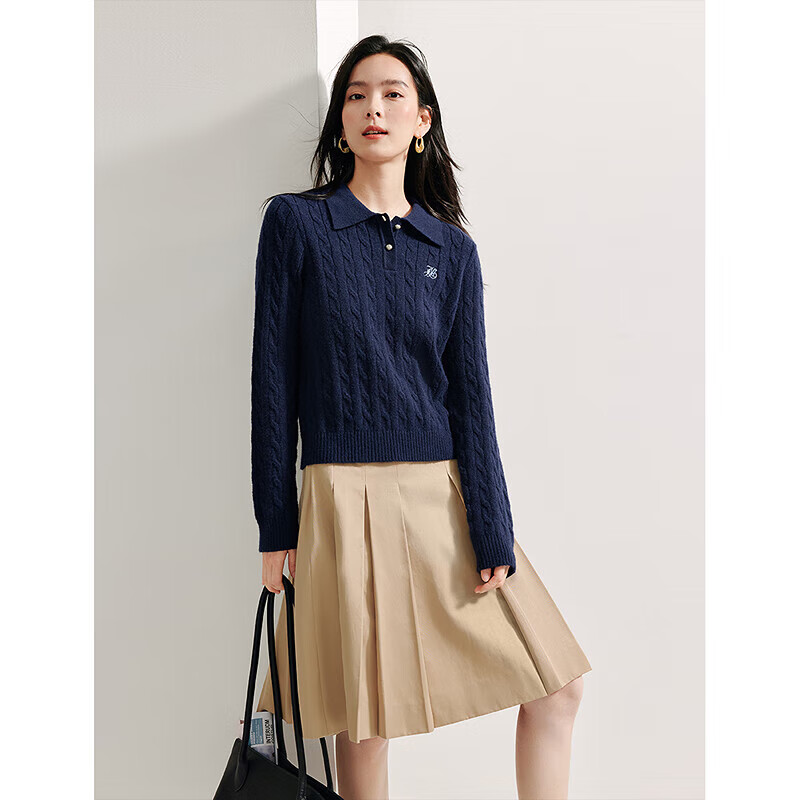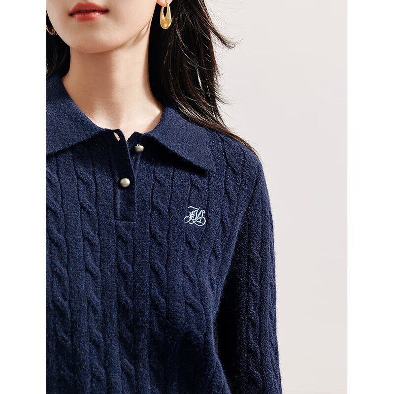 茵曼(INMAN) 毛衣女POLO领秋冬套头针织衫通勤长袖毛衣 宝蓝色 M