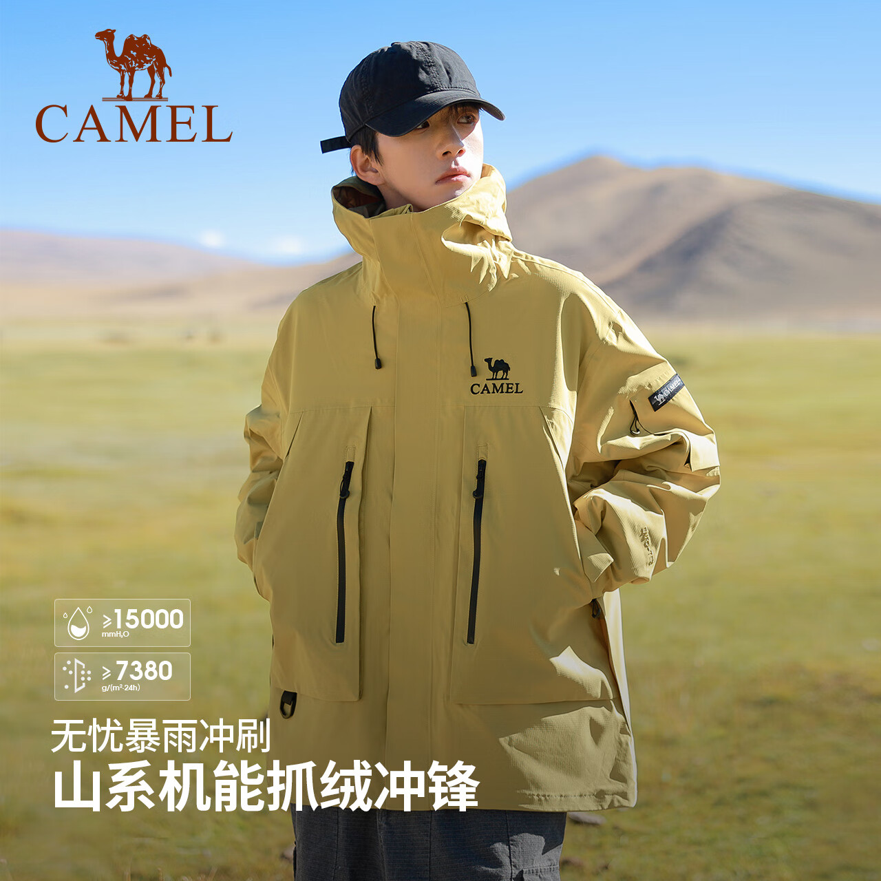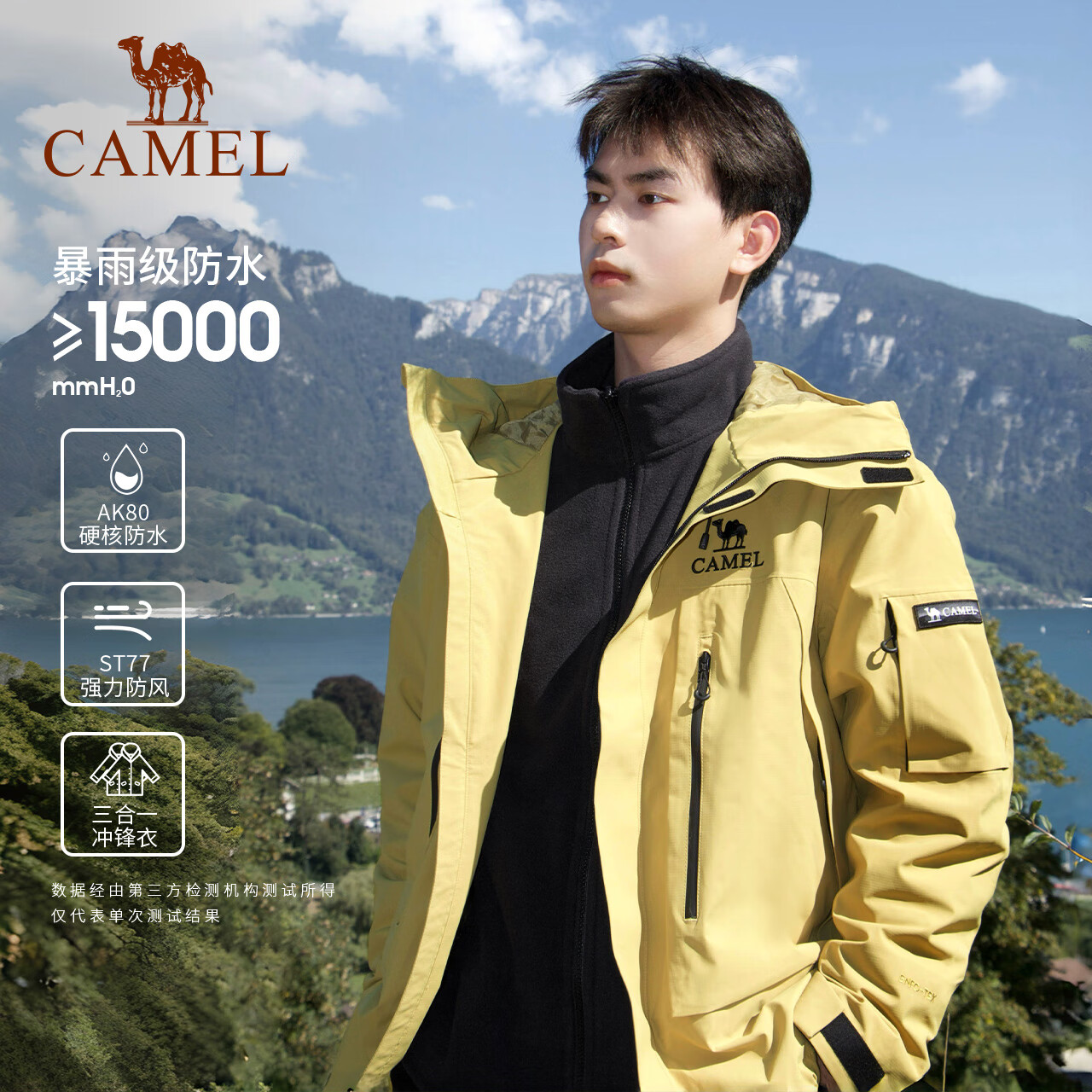 骆驼女装冲锋衣三合一男女新款黄色外套暴雨级防风防水登山服