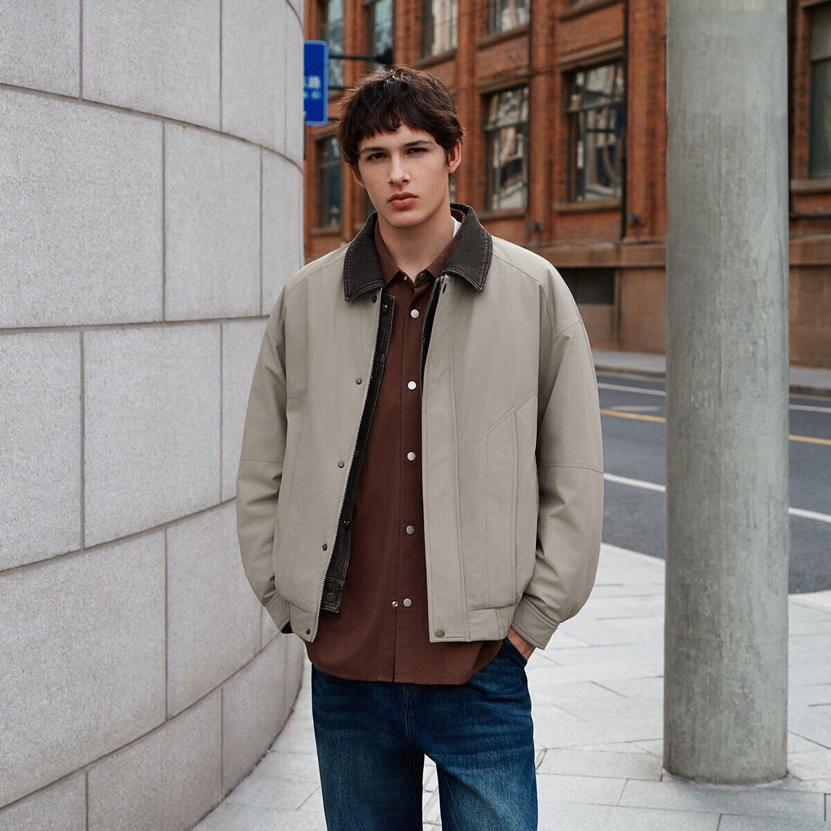 森马(Semir)棉服男假两件飞行员拼接牛仔棉衣2025年oversize冬109725112106