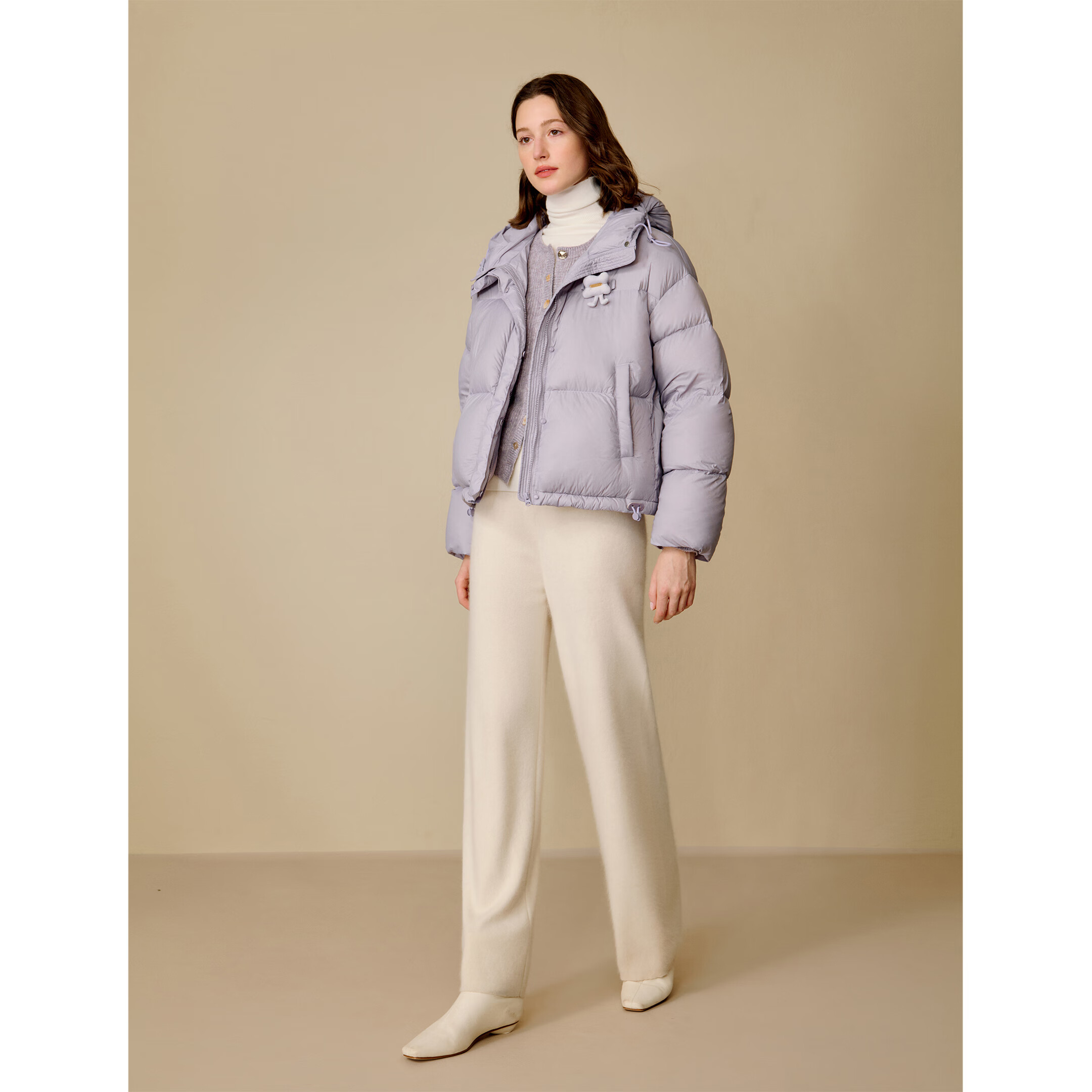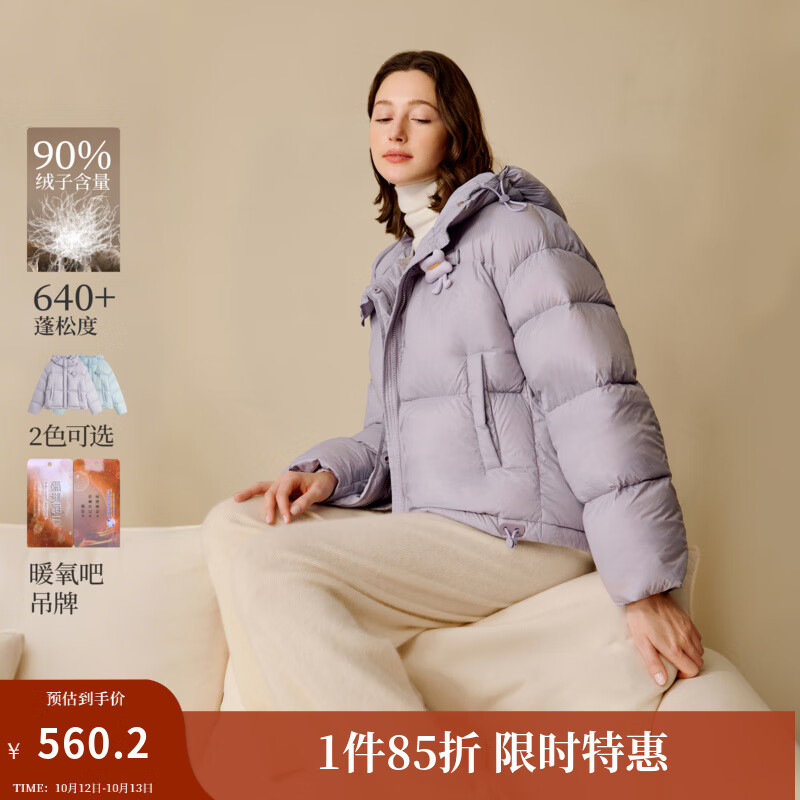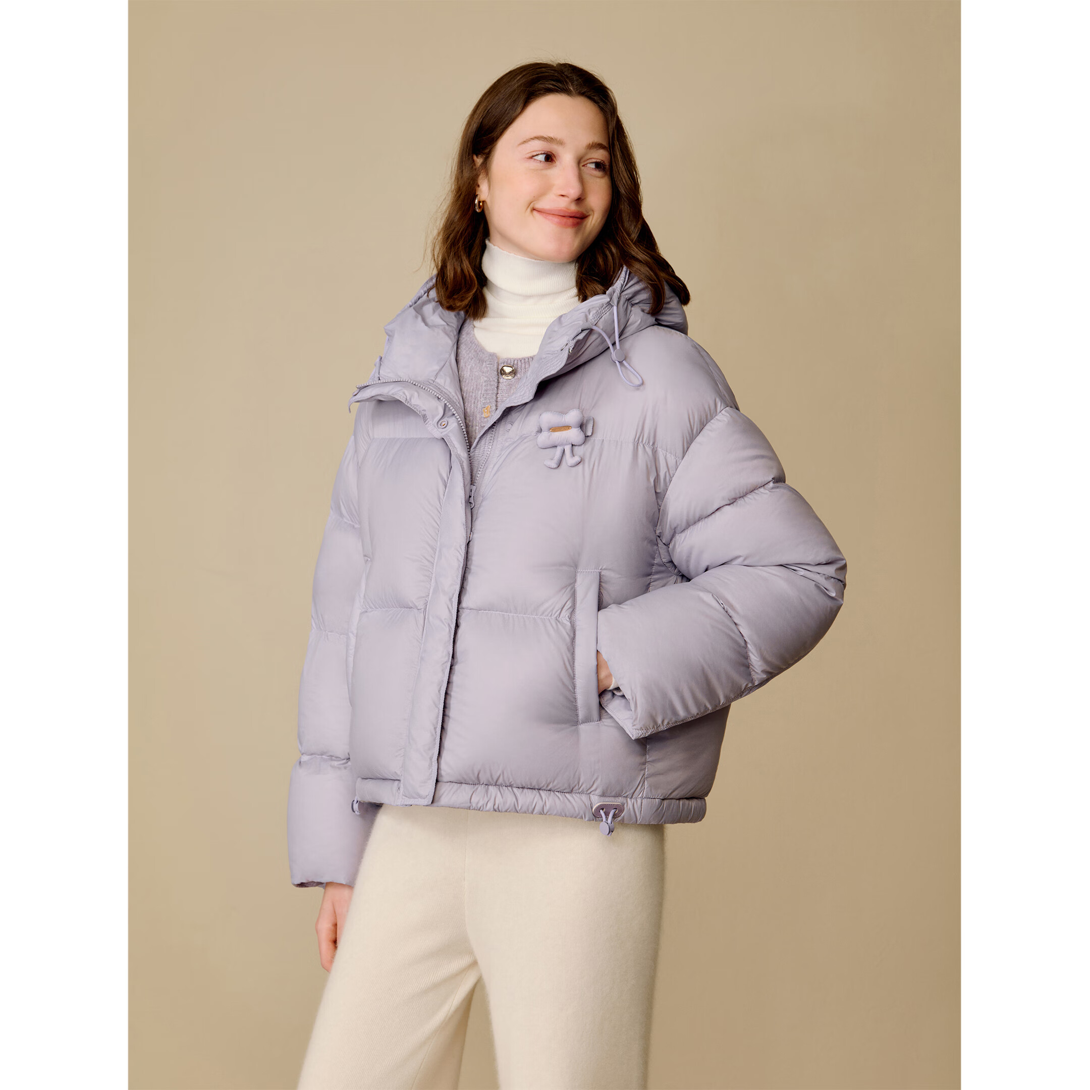 茵曼2025秋冬女装新款快热纱泡芙无胆羽绒服立体绒包短款保暖外套 酱紫色 S