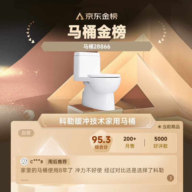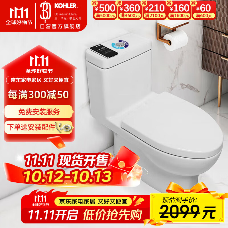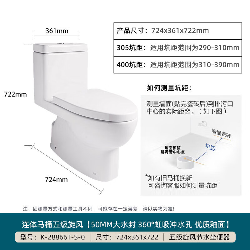 科勒(KOHLER)连体马桶五级旋风虹吸节水坐便器缓降座厕305坑距28866T1级水效