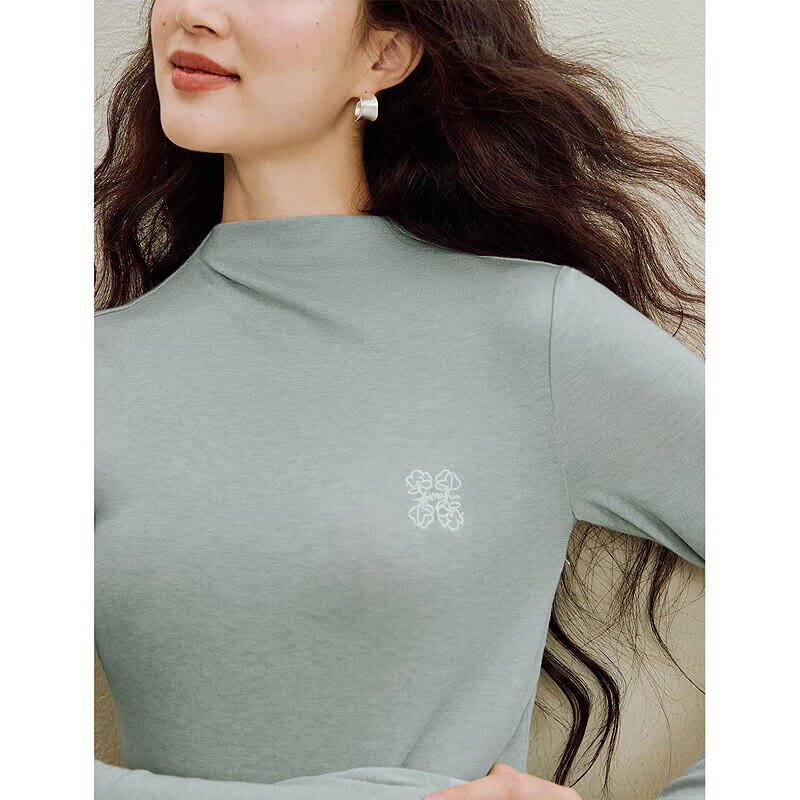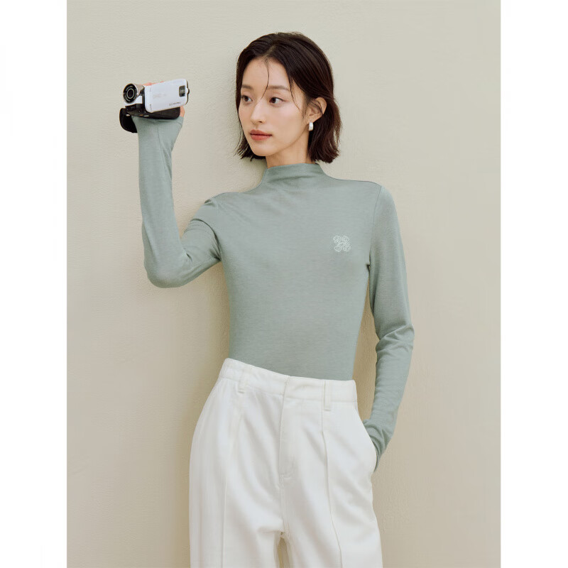 茵曼(INMAN)2025秋冬女装新款天丝羊毛可机洗针织衫叠穿内搭修身长袖打底衫 浅蓝色 S (裤子26码)