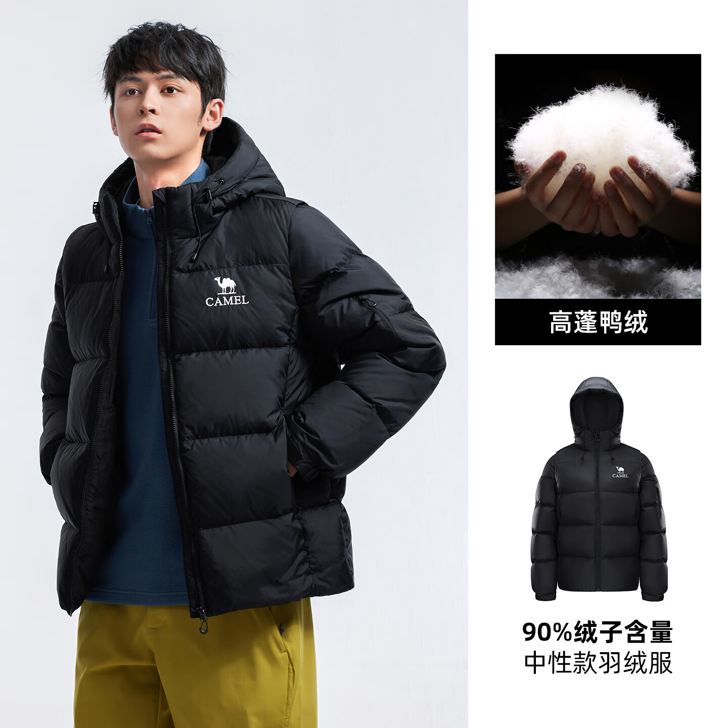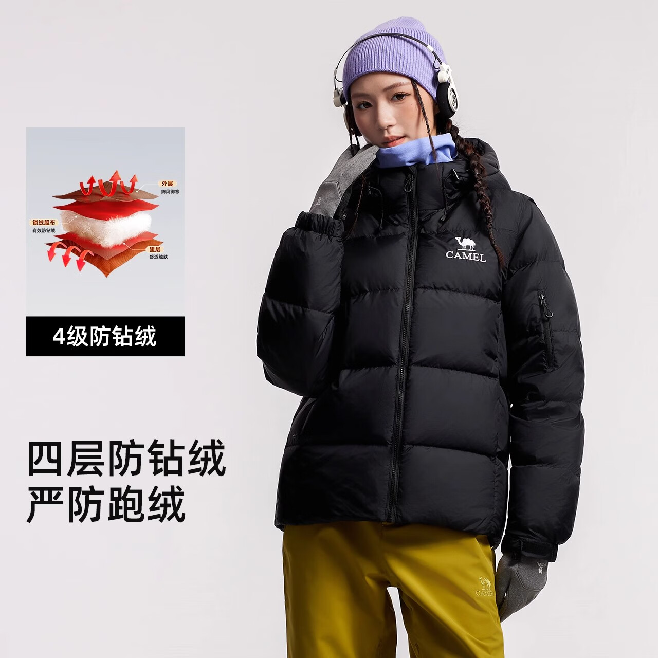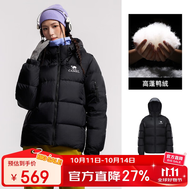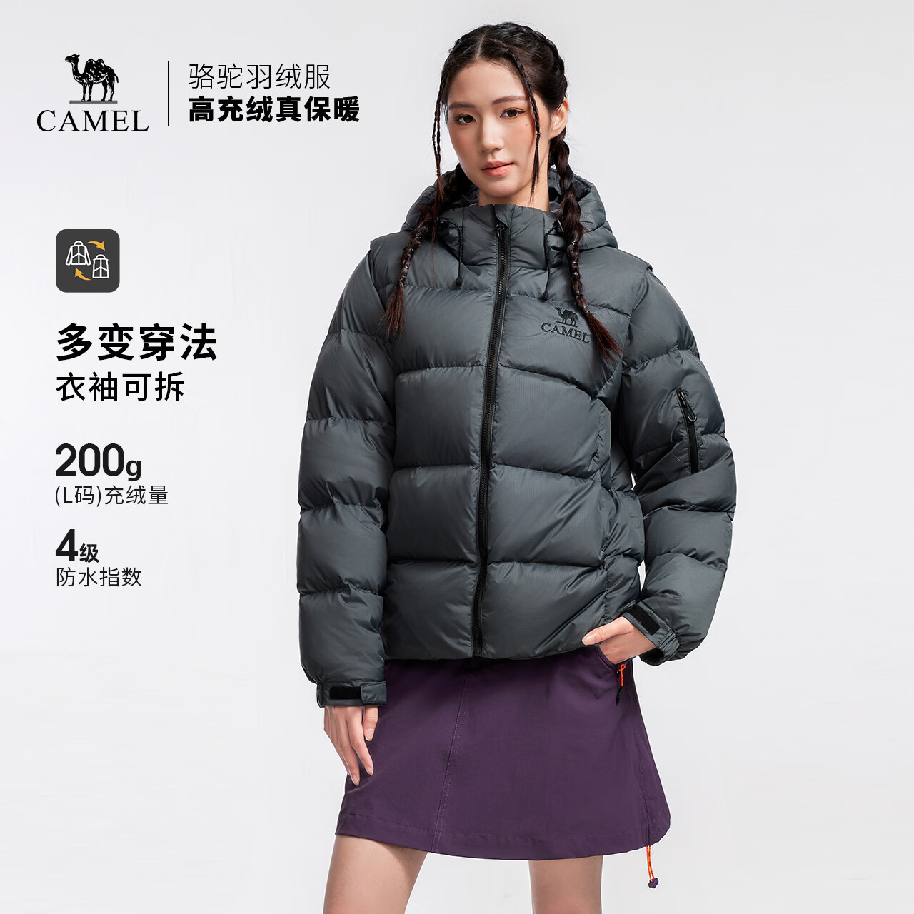 骆驼女装羽绒服冬季新款男女同款袖子可拆防泼水高蓬保暖面包服