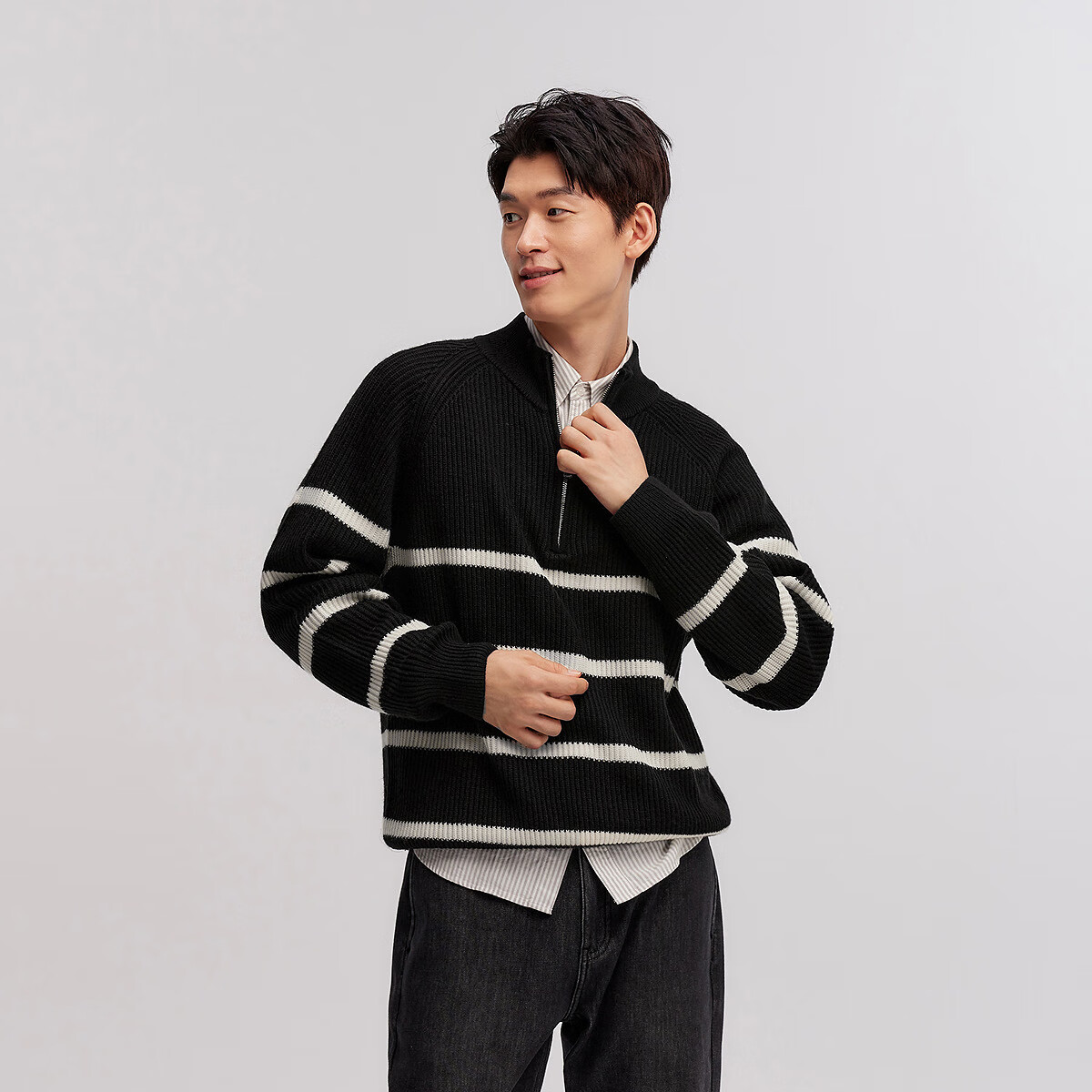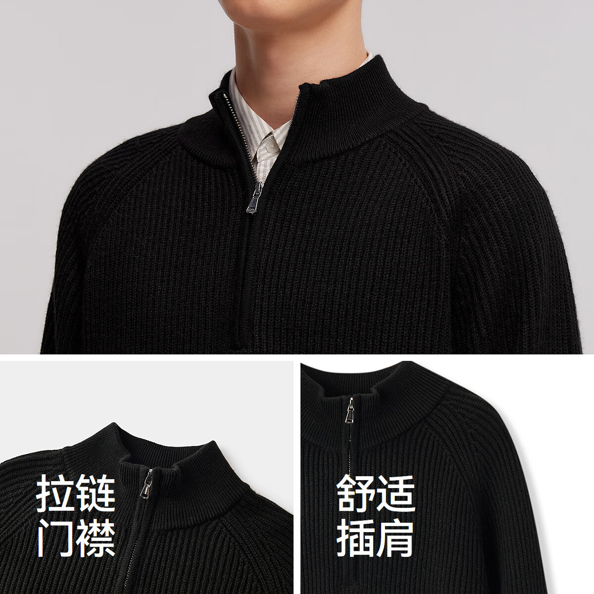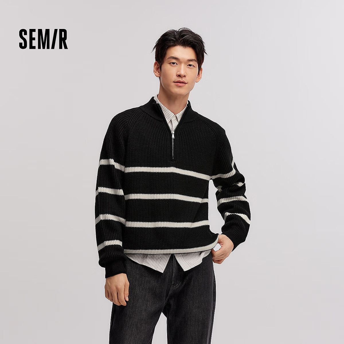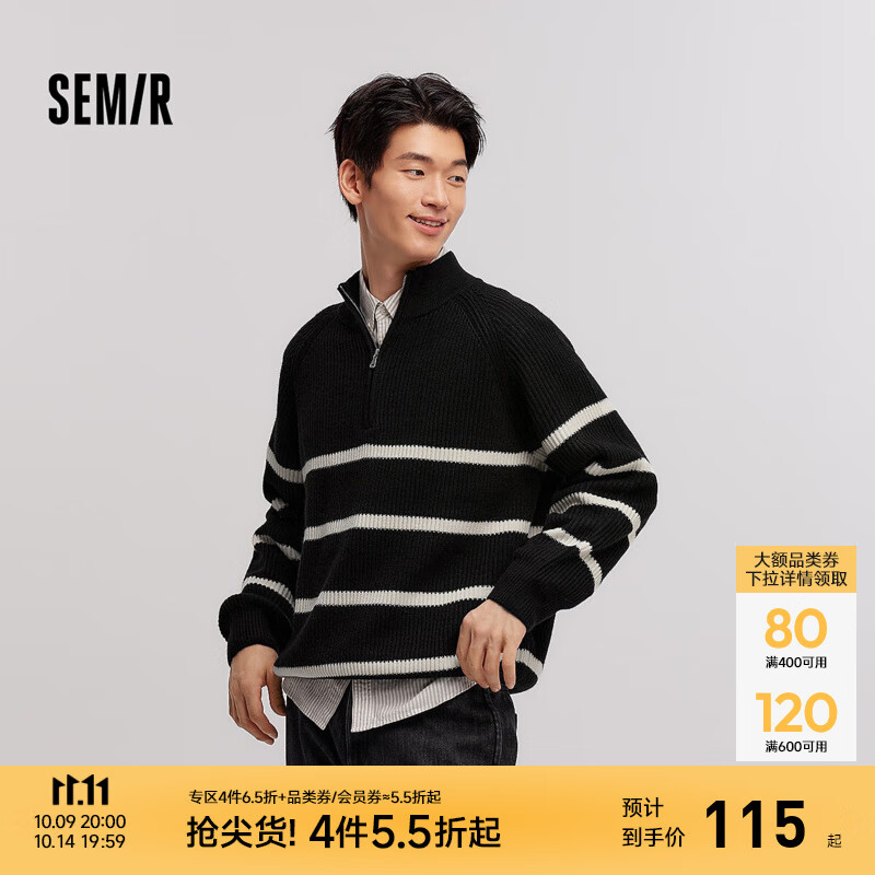 森马(Semir)森柔|毛衫男冬季含羊毛针织衫老钱风拉链半开襟毛衣情侣内搭 黑白色调00391 L