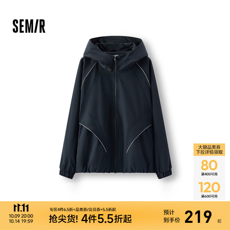 今日推荐:森马(Semir)外套男冬季加绒连帽夹克2025新款oversize时尚运动插肩袖上衣 深蓝80872 M
