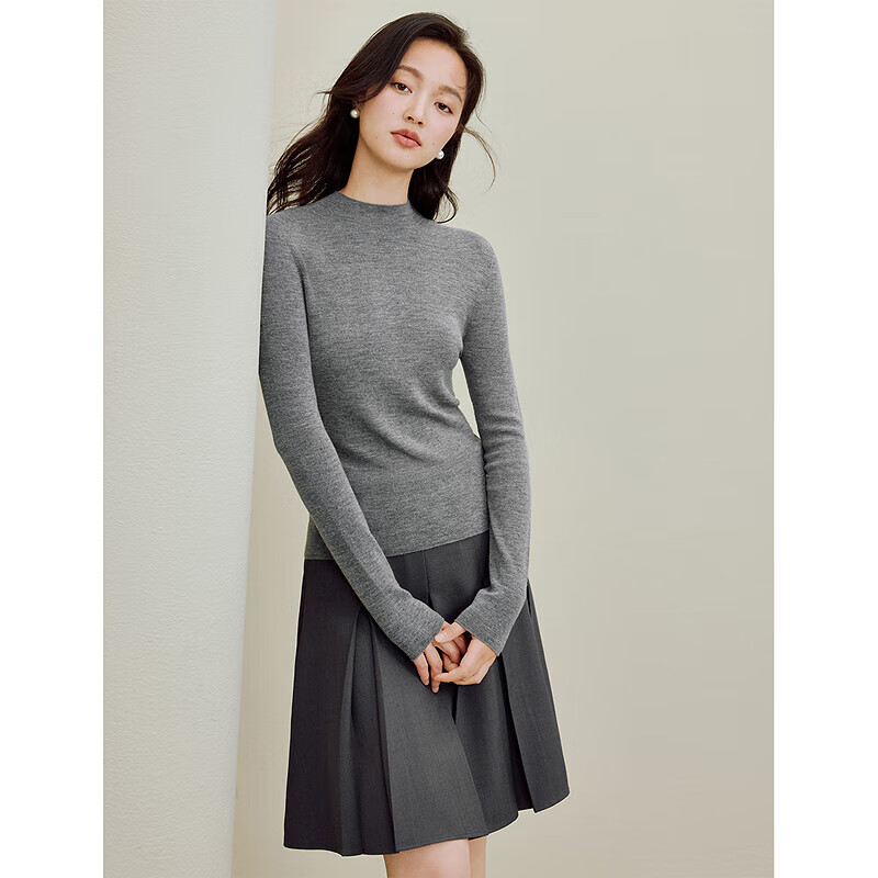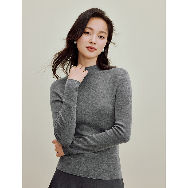 茵曼(INMAN)2025秋冬女装新款一体半高领可机洗羊毛衫针织毛衣打底衫 贵族灰 M