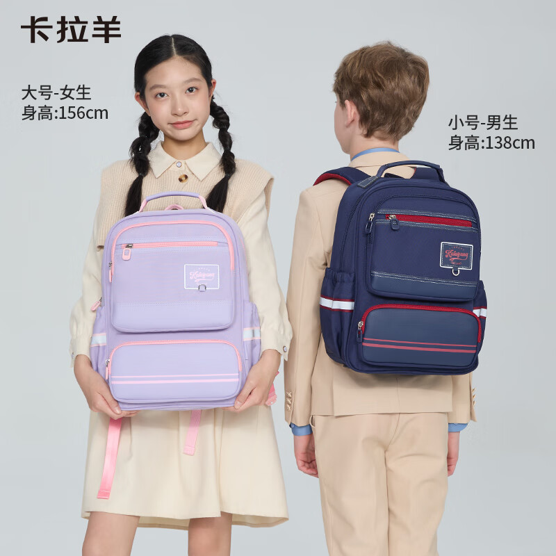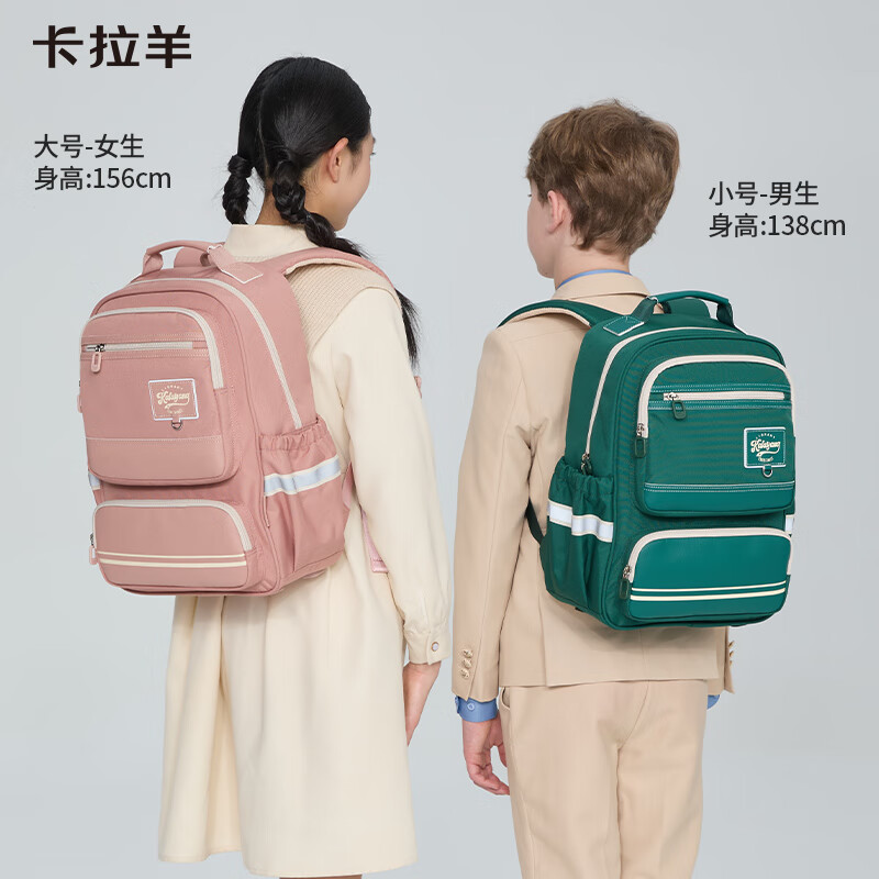 卡拉羊小学生1-6年级防下坠减负风琴书包大容量高颜值双肩包儿童书包 【启航】莫兰迪粉 【容量20L】身高135cm以上