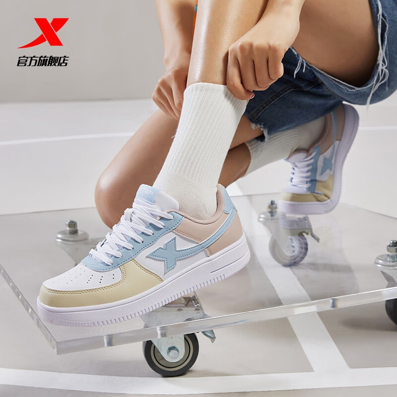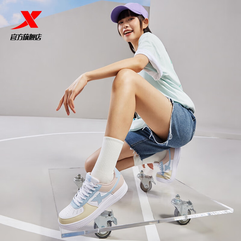 特步(XTEP)【运动青年】男鞋板鞋男时尚透气小白鞋休闲运动鞋 白粉兰(女) 36