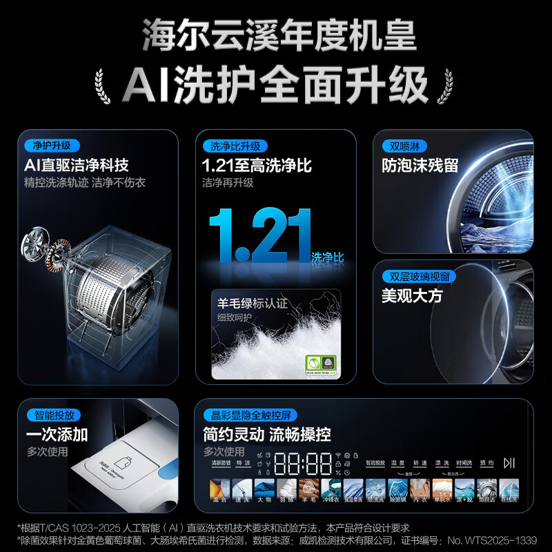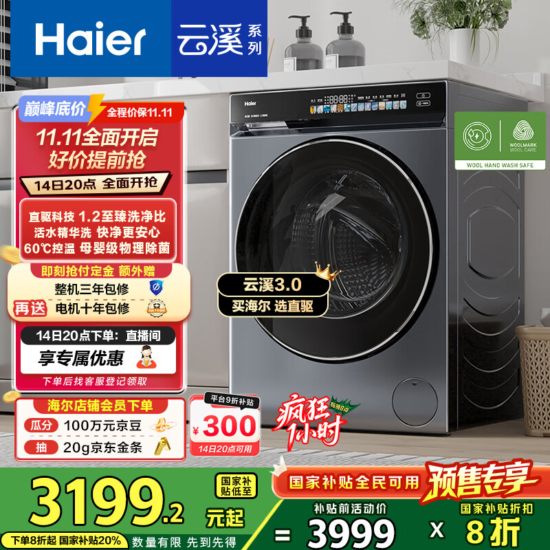 海尔(Haier)云溪3.0滚筒洗衣机全自动10公斤 超薄家用家电国家补贴 京东自营583 一级能效以旧换新 直驱内衣洗