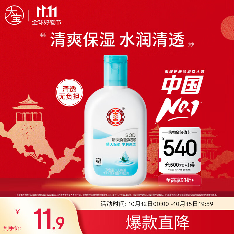 大宝SOD清爽保湿凝露100ml擦脸油补水保湿乳液面霜男女士面部护肤品