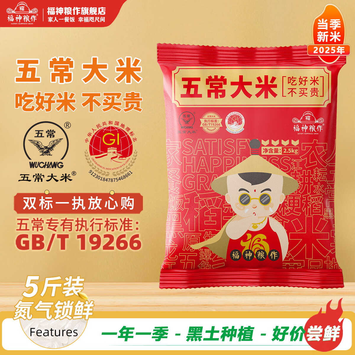 福神粮作黑龙江正宗五常大米5斤双标认证五常直供19266一等粳米装现磨现发