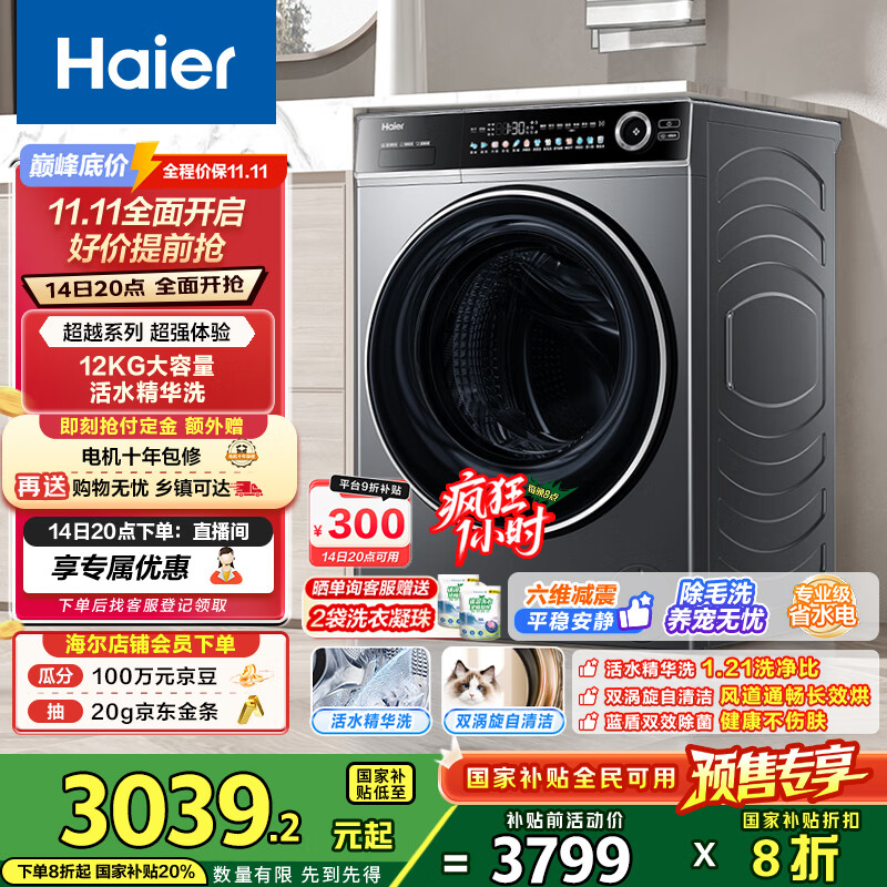 海尔(Haier)滚筒洗衣机全自动洗烘一体带烘干12公斤 家用家电国家补贴 京东自营659H 一级能效以旧换新内衣洗