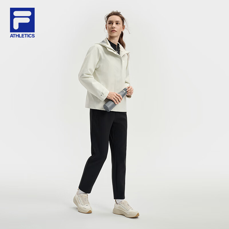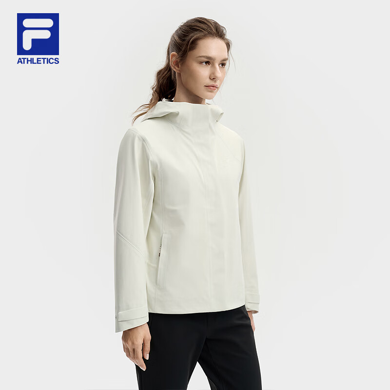 FILA 斐乐官方女装冲锋衣夹克二合一2025冬新款健身运动宽松连帽外套 浅粉灰-GY S 160/80A/S