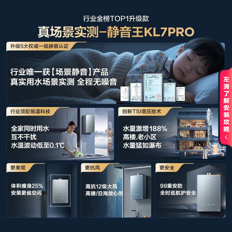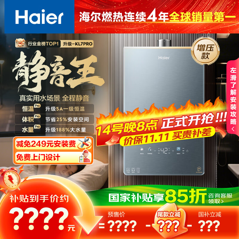 海尔(Haier)【静音王KL7PRO】16升燃气热水器天然气 全维降噪 一级恒温【国家补贴15%】小体积大水量 以旧换新