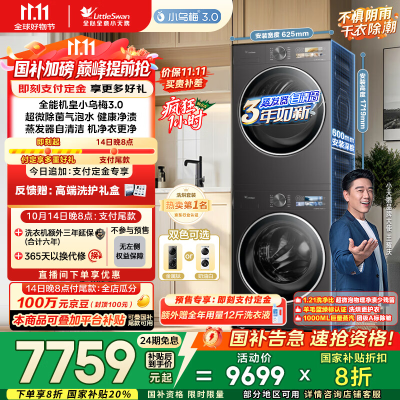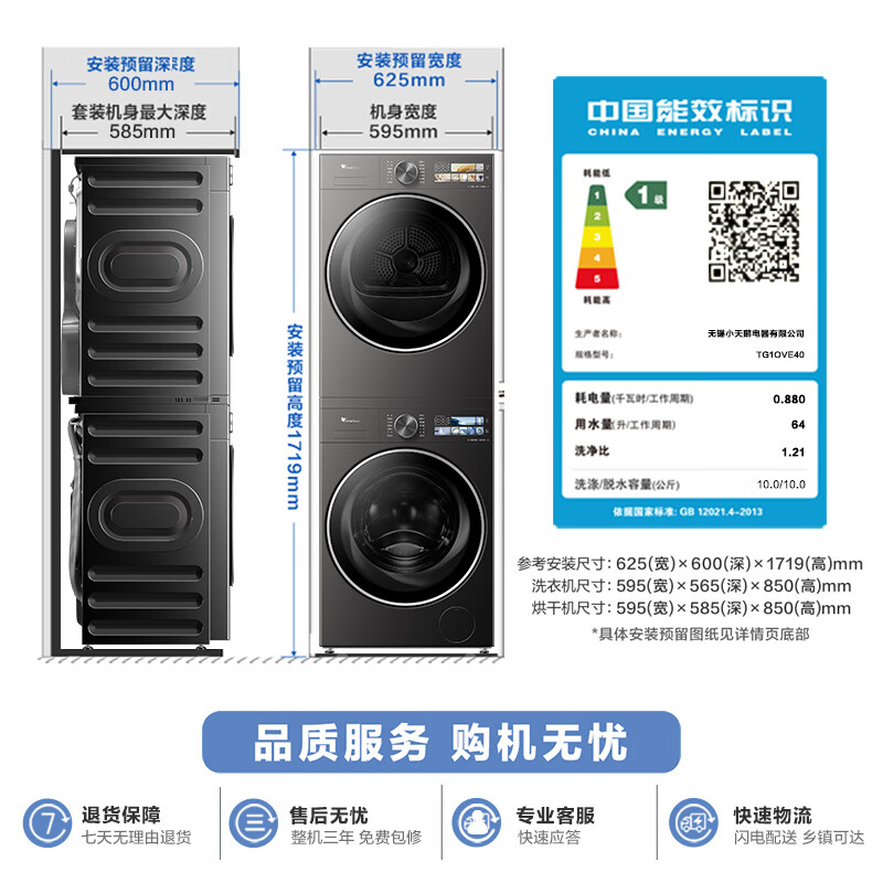 小天鹅(LittleSwan)洗烘套装 10KG滚筒洗衣机全自动+变频热泵烘干机家用烘衣服【小乌梅3.0】TG10VE40+VE40 国家补贴