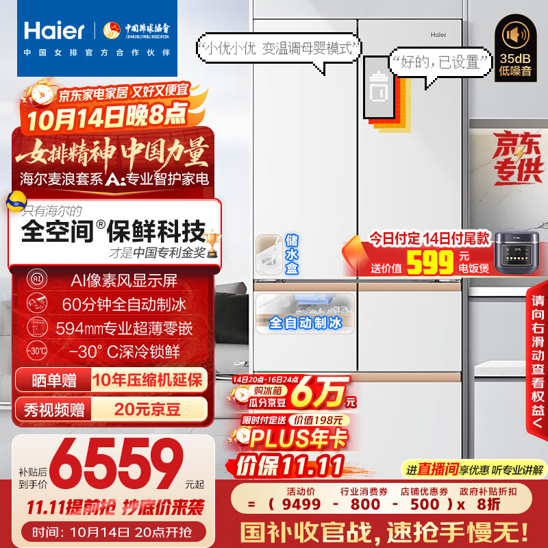 海尔(Haier)「顶配机皇」麦浪512Ultra法式五门超薄零嵌AI全自动制冰一级能效家用电冰箱BCD-512WGHMDBGVSU1