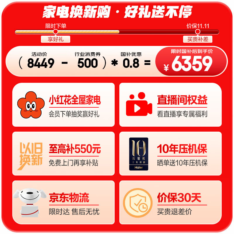 海尔(Haier)「麦浪套系」512升M5全空间保鲜594mm专业超薄零嵌多门家用电冰箱BCD-512WGHMD1BWLU1国家补贴20%