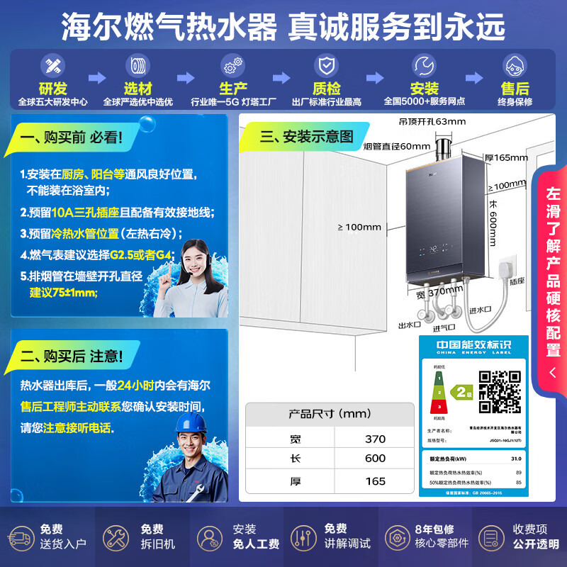 海尔(Haier)【K系列KL7】16升燃气热水器天然气家用 5A一级恒温 TSI增压188%【国家补贴15%】一级静音以旧换新