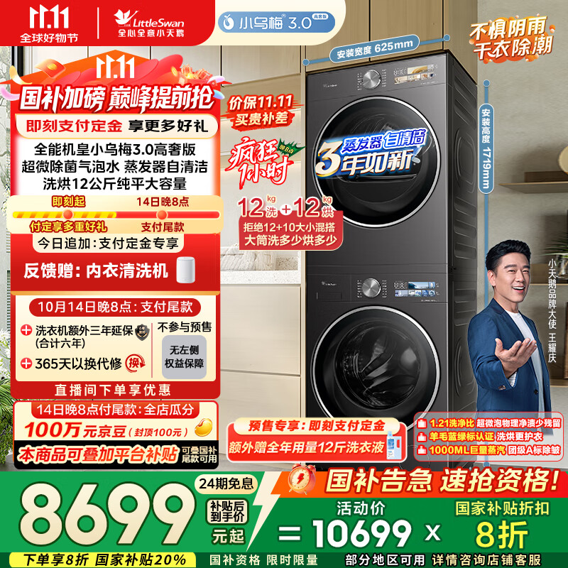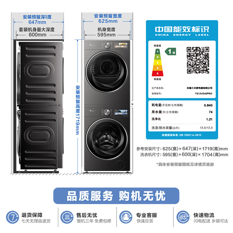 小天鹅(LittleSwan)洗烘套装 12KG滚筒洗衣机全自动+12KG变频热泵烘干机家用【小乌梅3.0高奢】VE40PRO+40PRO国家补贴