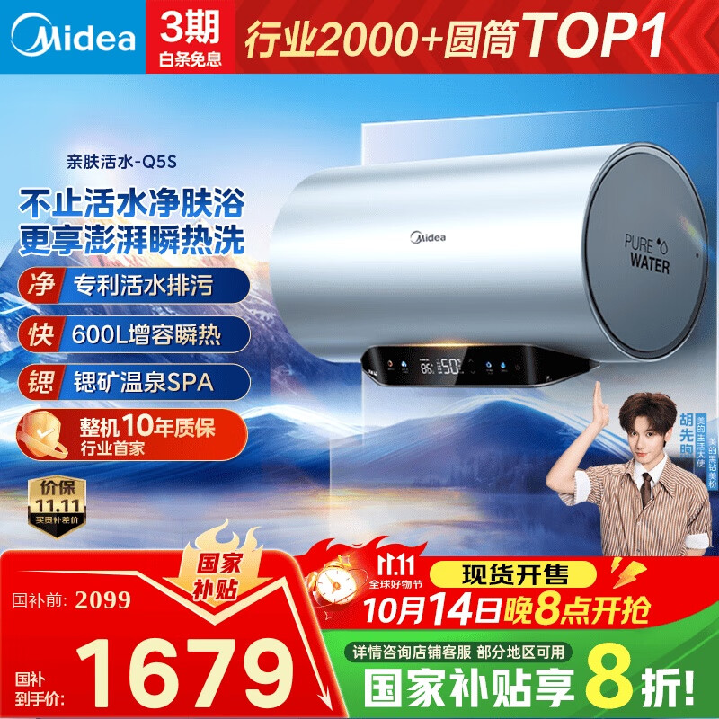 美的(Midea)【亲肤活水Q5S】60L电热水器 瞬热洗富锶养肤温泉浴 免换镁棒3200W速热家用储水式国家补贴20%