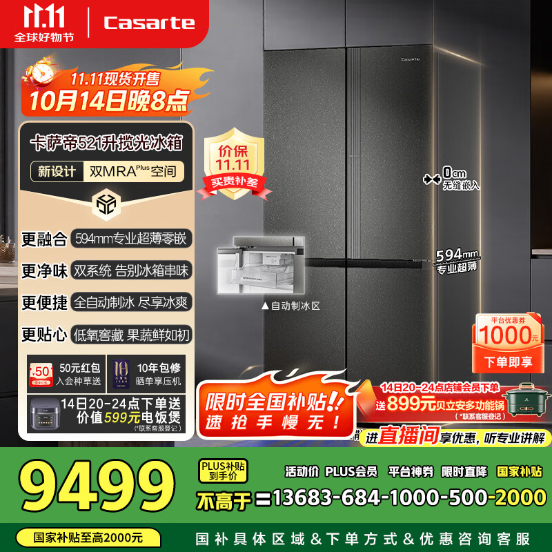 卡萨帝(Casarte)揽光冰箱星空版521升全自动制冰594mm超薄零嵌入式双系统十字四开门国家补贴BCD-521WGCTDMGCTU1
