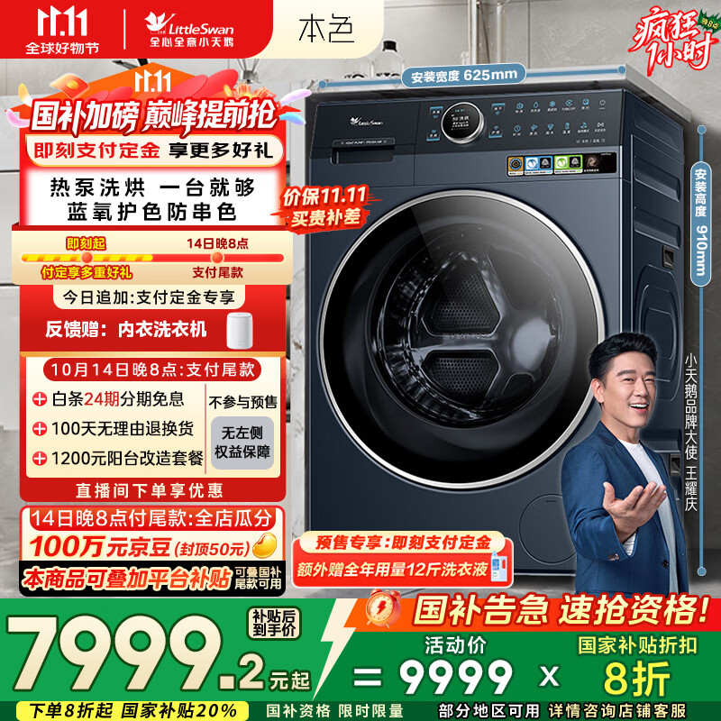 小天鹅(LittleSwan)12KG滚筒洗衣机全自动家用 热泵洗烘一体【TDH12K700】小天鹅六边形战士 家电国家补贴 以旧换新