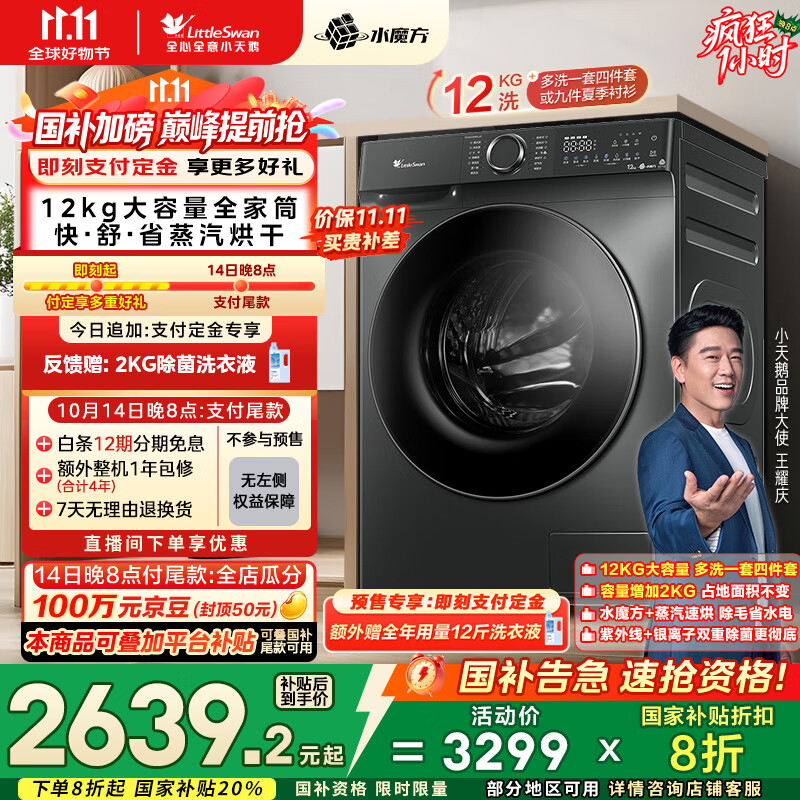 小天鹅(LittleSwan)滚筒洗衣机全自动家用 洗烘一体洗衣机 水魔方【TD120V618PLUS】12公斤 家电国家补贴20% 以旧换新