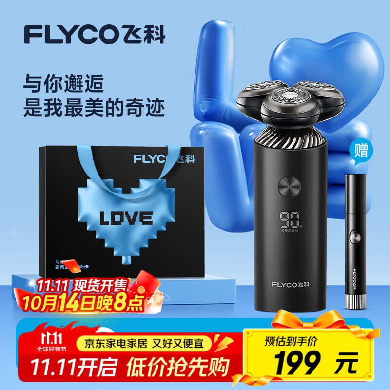 飞科(FLYCO)男士电动旋转式刮胡剃须刀须刨生日情人节日礼物送男友送老公送父亲FS966-情人节表白限定礼袋款