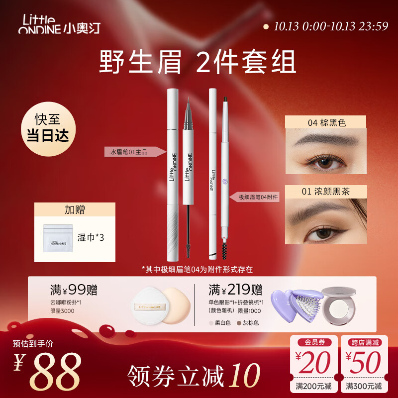 小奥汀(littleondine)双头定型水眉笔02棕咖+极细眉笔02棕色 野生眉胶笔持久防水防汗