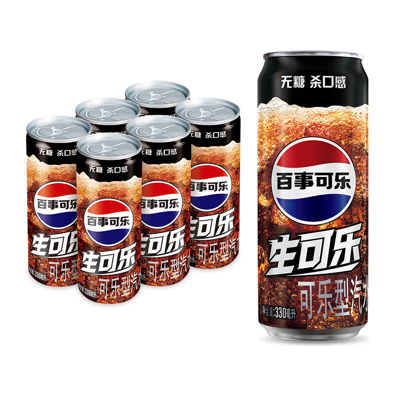 百事可乐Pepsi 无糖生可乐 碳酸饮料汽水 330ml*6听 细长罐整箱装